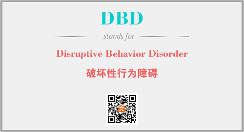 上述内容是“Disruptive Behavior Disorder”作为“DBD”的缩写,解释为“破坏性行为障碍”时的信息,以及英文缩略词DBD所代表的英文单词,其对应的中文拼音、详细解释以及在英文中的流行度和相关分类、应用领域及应用示例等。