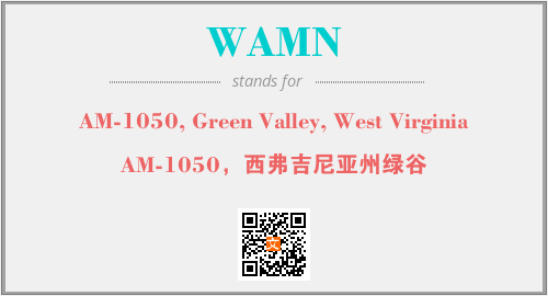 上述内容是“AM-1050, Green Valley, West Virginia”作为“WAMN”的缩写,解释为“AM-1050,西弗吉尼亚州绿谷”时的信息,以及英文缩略词WAMN所代表的英文单词,其对应的中文拼音、详细解释以及在英文中的流行度和相关分类、应用领域及应用示例等。