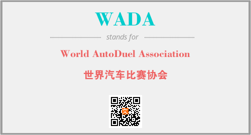 上述内容是“World AutoDuel Association”作为“WADA”的缩写,解释为“世界汽车比赛协会”时的信息,以及英文缩略词WADA所代表的英文单词,其对应的中文拼音、详细解释以及在英文中的流行度和相关分类、应用领域及应用示例等。