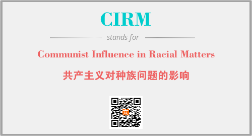 上述内容是“Communist Influence in Racial Matters”作为“CIRM”的缩写,解释为“共产主义对种族问题的影响”时的信息,以及英文缩略词CIRM所代表的英文单词,其对应的中文拼音、详细解释以及在英文中的流行度和相关分类、应用领域及应用示例等。