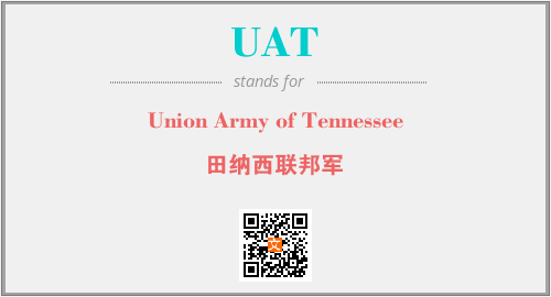 上述内容是“Union Army of Tennessee”作为“UAT”的缩写,解释为“田纳西联邦军”时的信息,以及英文缩略词UAT所代表的英文单词,其对应的中文拼音、详细解释以及在英文中的流行度和相关分类、应用领域及应用示例等。