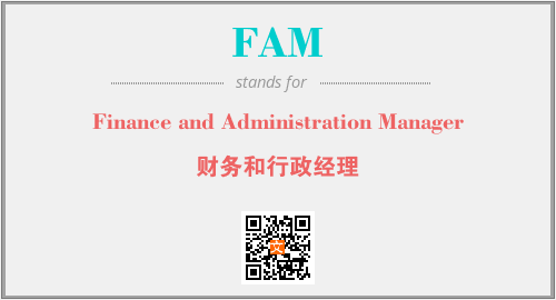 英文缩略词“FAM”经常作为“Finance and Administration Manager”的英文缩写来使用,中文表示:“财务和行政经理”。本文将详细介绍英文缩写词FAM所代表英文单词,其对应的中文拼音、详细解释以及在英语中的流行度。此外,还有关于缩略词FAM的分类、应用领域及相关应用示例等。