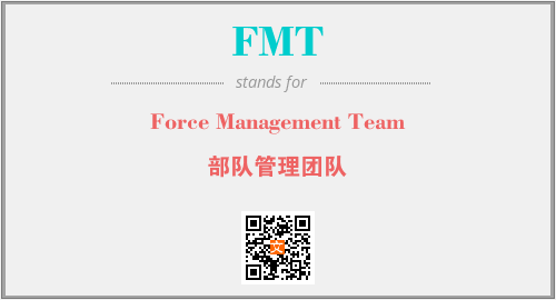 英文缩略词“FMT”经常作为“Force Management Team”的英文缩写来使用,中文表示:“部队管理团队”。本文将详细介绍英文缩写词FMT所代表英文单词,其对应的中文拼音、详细解释以及在英语中的流行度。此外,还有关于缩略词FMT的分类、应用领域及相关应用示例等。