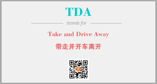 上述内容是“Take and Drive Away”作为“TDA”的缩写,解释为“带走并开车离开”时的信息,以及英文缩略词TDA所代表的英文单词,其对应的中文拼音、详细解释以及在英文中的流行度和相关分类、应用领域及应用示例等。