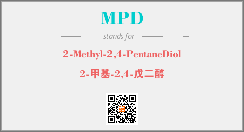 上述内容是“2-Methyl-2,4-PentaneDiol”作为“MPD”的缩写,解释为“2-甲基-2,4-戊二醇”时的信息,以及英文缩略词MPD所代表的英文单词,其对应的中文拼音、详细解释以及在英文中的流行度和相关分类、应用领域及应用示例等。