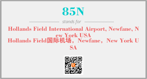 上述内容是“Hollands Field International Airport, Newfane, New York USA”作为“85N”的缩写,解释为“Hollands Field国际机场,Newfane,New York USA”时的信息,以及英文缩略词85N所代表的英文单词,其对应的中文拼音、详细解释以及在英文中的流行度和相关分类、应用领域及应用示例等。