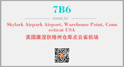 以上为Skylark Airpark Airport, Warehouse Point, Connecticut USA英文缩略词7B6的中文解释,以及该英文缩写在英语的流行度、分类和应用领域方面的信息。