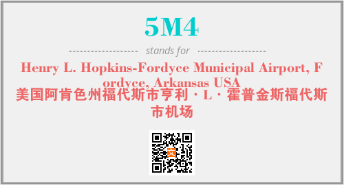 上述内容是“Henry L. Hopkins-Fordyce Municipal Airport, Fordyce, Arkansas USA”作为“5M4”的缩写,解释为“美国阿肯色州福代斯市亨利·L·霍普金斯福代斯市机场”时的信息,以及英文缩略词5M4所代表的英文单词,其对应的中文拼音、详细解释以及在英文中的流行度和相关分类、应用领域及应用示例等。