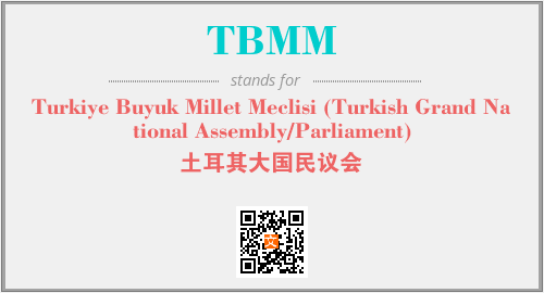 英文缩略词“TBMM”经常作为“Turkiye Buyuk Millet Meclisi (Turkish Grand National Assembly/Parliament)”的英文缩写来使用,中文表示:“土耳其大国民议会”。本文将详细介绍英文缩写词TBMM所代表英文单词,其对应的中文拼音、详细解释以及在英语中的流行度。此外,还有关于缩略词TBMM的分类、应用领域及相关应用示例等。