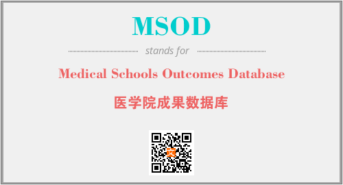 上述内容是“Medical Schools Outcomes Database”作为“MSOD”的缩写,解释为“医学院成果数据库”时的信息,以及英文缩略词MSOD所代表的英文单词,其对应的中文拼音、详细解释以及在英文中的流行度和相关分类、应用领域及应用示例等。