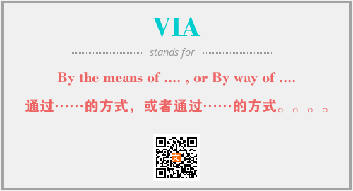 上述内容是“By the means of .... , or By way of ....”作为“VIA”的缩写,解释为“通过……的方式,或者通过……的方式。。。。”时的信息,以及英文缩略词VIA所代表的英文单词,其对应的中文拼音、详细解释以及在英文中的流行度和相关分类、应用领域及应用示例等。