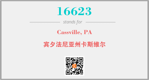 上述内容是“Cassville, PA”作为“16623”的缩写,解释为“宾夕法尼亚州卡斯维尔”时的信息,以及英文缩略词16623所代表的英文单词,其对应的中文拼音、详细解释以及在英文中的流行度和相关分类、应用领域及应用示例等。