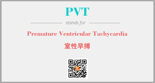 上述内容是“Premature Ventricular Tachycardia”作为“PVT”的缩写,解释为“室性早搏”时的信息,以及英文缩略词PVT所代表的英文单词,其对应的中文拼音、详细解释以及在英文中的流行度和相关分类、应用领域及应用示例等。