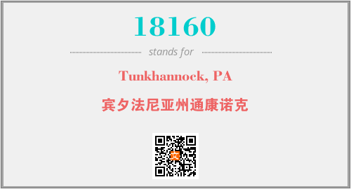 上述内容是“Tunkhannock, PA”作为“18160”的缩写,解释为“宾夕法尼亚州通康诺克”时的信息,以及英文缩略词18160所代表的英文单词,其对应的中文拼音、详细解释以及在英文中的流行度和相关分类、应用领域及应用示例等。
