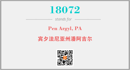 上述内容是“Pen Argyl, PA”作为“18072”的缩写,解释为“宾夕法尼亚州潘阿吉尔”时的信息,以及英文缩略词18072所代表的英文单词,其对应的中文拼音、详细解释以及在英文中的流行度和相关分类、应用领域及应用示例等。
