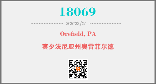 上述内容是“Orefield, PA”作为“18069”的缩写,解释为“宾夕法尼亚州奥雷菲尔德”时的信息,以及英文缩略词18069所代表的英文单词,其对应的中文拼音、详细解释以及在英文中的流行度和相关分类、应用领域及应用示例等。