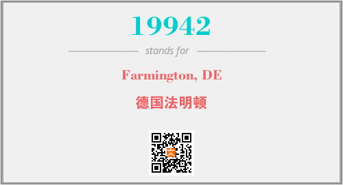上述内容是“Farmington, DE”作为“19942”的缩写,解释为“德国法明顿”时的信息,以及英文缩略词19942所代表的英文单词,其对应的中文拼音、详细解释以及在英文中的流行度和相关分类、应用领域及应用示例等。