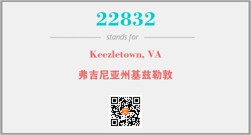 上述内容是“Keezletown, VA”作为“22832”的缩写,解释为“弗吉尼亚州基兹勒敦”时的信息,以及英文缩略词22832所代表的英文单词,其对应的中文拼音、详细解释以及在英文中的流行度和相关分类、应用领域及应用示例等。