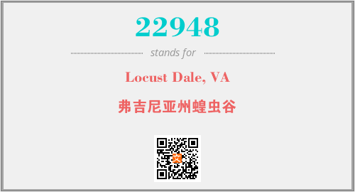 上述内容是“Locust Dale, VA”作为“22948”的缩写,解释为“弗吉尼亚州蝗虫谷”时的信息,以及英文缩略词22948所代表的英文单词,其对应的中文拼音、详细解释以及在英文中的流行度和相关分类、应用领域及应用示例等。