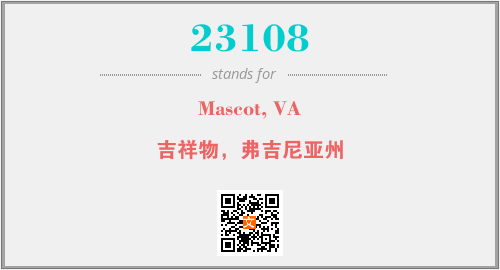 上述内容是“Mascot, VA”作为“23108”的缩写,解释为“吉祥物,弗吉尼亚州”时的信息,以及英文缩略词23108所代表的英文单词,其对应的中文拼音、详细解释以及在英文中的流行度和相关分类、应用领域及应用示例等。