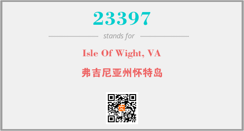 上述内容是“Isle Of Wight, VA”作为“23397”的缩写,解释为“弗吉尼亚州怀特岛”时的信息,以及英文缩略词23397所代表的英文单词,其对应的中文拼音、详细解释以及在英文中的流行度和相关分类、应用领域及应用示例等。