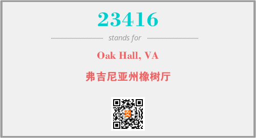 上述内容是“Oak Hall, VA”作为“23416”的缩写,解释为“弗吉尼亚州橡树厅”时的信息,以及英文缩略词23416所代表的英文单词,其对应的中文拼音、详细解释以及在英文中的流行度和相关分类、应用领域及应用示例等。