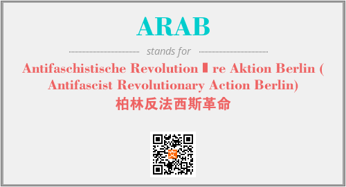 以上为Antifaschistische Revolutionäre Aktion Berlin (Antifascist Revolutionary Action Berlin)英文缩略词ARAB的中文解释,以及该英文缩写在英语的流行度、分类和应用领域方面的信息。