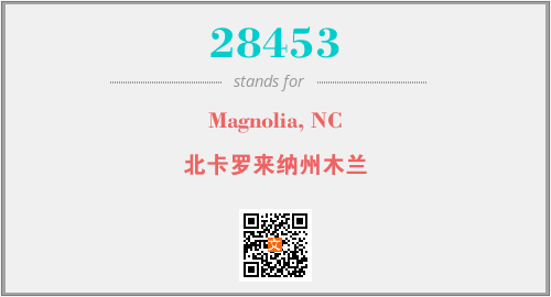 上述内容是“Magnolia, NC”作为“28453”的缩写,解释为“北卡罗来纳州木兰”时的信息,以及英文缩略词28453所代表的英文单词,其对应的中文拼音、详细解释以及在英文中的流行度和相关分类、应用领域及应用示例等。
