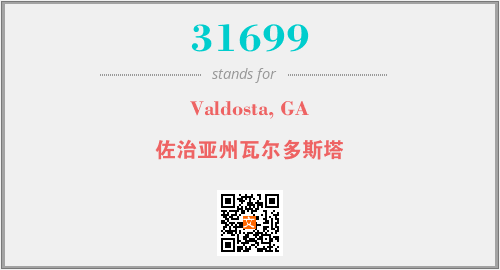 上述内容是“Valdosta, GA”作为“31699”的缩写,解释为“佐治亚州瓦尔多斯塔”时的信息,以及英文缩略词31699所代表的英文单词,其对应的中文拼音、详细解释以及在英文中的流行度和相关分类、应用领域及应用示例等。