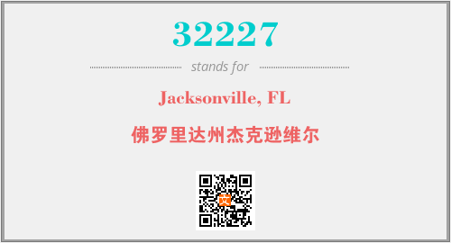 上述内容是“Jacksonville, FL”作为“32227”的缩写,解释为“佛罗里达州杰克逊维尔”时的信息,以及英文缩略词32227所代表的英文单词,其对应的中文拼音、详细解释以及在英文中的流行度和相关分类、应用领域及应用示例等。