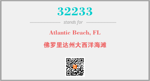 上述内容是“Atlantic Beach, FL”作为“32233”的缩写,解释为“佛罗里达州大西洋海滩”时的信息,以及英文缩略词32233所代表的英文单词,其对应的中文拼音、详细解释以及在英文中的流行度和相关分类、应用领域及应用示例等。