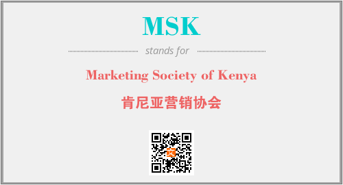 上述内容是“Marketing Society of Kenya”作为“MSK”的缩写,解释为“肯尼亚营销协会”时的信息,以及英文缩略词MSK所代表的英文单词,其对应的中文拼音、详细解释以及在英文中的流行度和相关分类、应用领域及应用示例等。