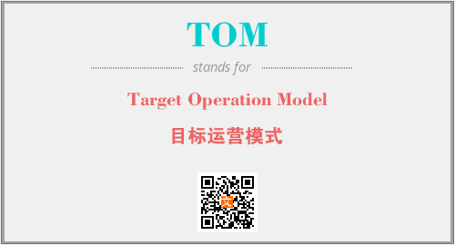 上述内容是“Target Operation Model”作为“TOM”的缩写,解释为“目标运营模式”时的信息,以及英文缩略词TOM所代表的英文单词,其对应的中文拼音、详细解释以及在英文中的流行度和相关分类、应用领域及应用示例等。