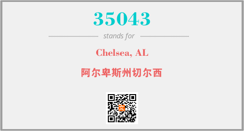 上述内容是“Chelsea, AL”作为“35043”的缩写,解释为“阿尔卑斯州切尔西”时的信息,以及英文缩略词35043所代表的英文单词,其对应的中文拼音、详细解释以及在英文中的流行度和相关分类、应用领域及应用示例等。