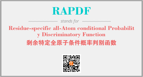 上述内容是“Residue-specific all-Atom conditional Probability Discriminatory Function”作为“RAPDF”的缩写,解释为“剩余特定全原子条件概率判别函数”时的信息,以及英文缩略词RAPDF所代表的英文单词,其对应的中文拼音、详细解释以及在英文中的流行度和相关分类、应用领域及应用示例等。