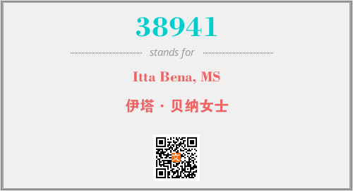 上述内容是“Itta Bena, MS”作为“38941”的缩写,解释为“伊塔·贝纳女士”时的信息,以及英文缩略词38941所代表的英文单词,其对应的中文拼音、详细解释以及在英文中的流行度和相关分类、应用领域及应用示例等。