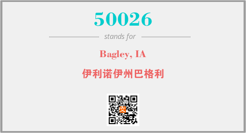 上述内容是“Bagley, IA”作为“50026”的缩写,解释为“伊利诺伊州巴格利”时的信息,以及英文缩略词50026所代表的英文单词,其对应的中文拼音、详细解释以及在英文中的流行度和相关分类、应用领域及应用示例等。