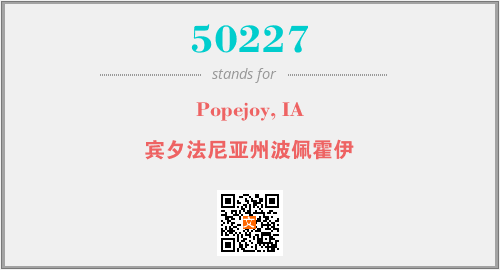 上述内容是“Popejoy, IA”作为“50227”的缩写,解释为“宾夕法尼亚州波佩霍伊”时的信息,以及英文缩略词50227所代表的英文单词,其对应的中文拼音、详细解释以及在英文中的流行度和相关分类、应用领域及应用示例等。