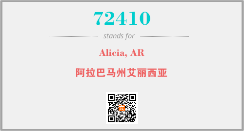 上述内容是“Alicia, AR”作为“72410”的缩写,解释为“阿拉巴马州艾丽西亚”时的信息,以及英文缩略词72410所代表的英文单词,其对应的中文拼音、详细解释以及在英文中的流行度和相关分类、应用领域及应用示例等。