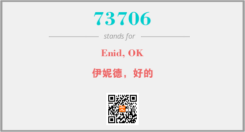 上述内容是“Enid, OK”作为“73706”的缩写,解释为“伊妮德,好的”时的信息,以及英文缩略词73706所代表的英文单词,其对应的中文拼音、详细解释以及在英文中的流行度和相关分类、应用领域及应用示例等。