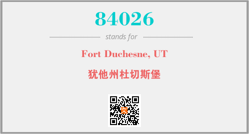 上述内容是“Fort Duchesne, UT”作为“84026”的缩写,解释为“犹他州杜切斯堡”时的信息,以及英文缩略词84026所代表的英文单词,其对应的中文拼音、详细解释以及在英文中的流行度和相关分类、应用领域及应用示例等。