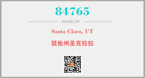 上述内容是“Santa Clara, UT”作为“84765”的缩写,解释为“犹他州圣克拉拉”时的信息,以及英文缩略词84765所代表的英文单词,其对应的中文拼音、详细解释以及在英文中的流行度和相关分类、应用领域及应用示例等。