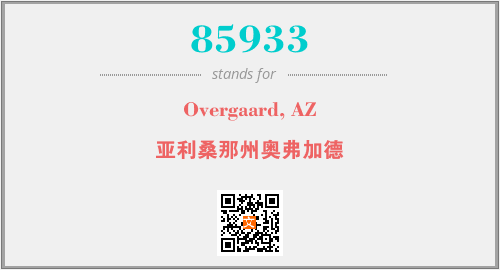 上述内容是“Overgaard, AZ”作为“85933”的缩写,解释为“亚利桑那州奥弗加德”时的信息,以及英文缩略词85933所代表的英文单词,其对应的中文拼音、详细解释以及在英文中的流行度和相关分类、应用领域及应用示例等。