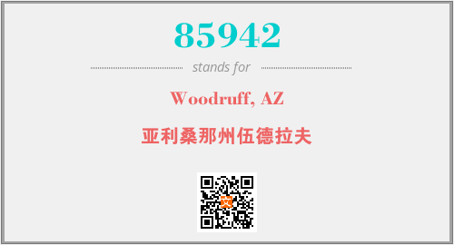 上述内容是“Woodruff, AZ”作为“85942”的缩写,解释为“亚利桑那州伍德拉夫”时的信息,以及英文缩略词85942所代表的英文单词,其对应的中文拼音、详细解释以及在英文中的流行度和相关分类、应用领域及应用示例等。