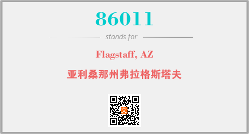上述内容是“Flagstaff, AZ”作为“86011”的缩写,解释为“亚利桑那州弗拉格斯塔夫”时的信息,以及英文缩略词86011所代表的英文单词,其对应的中文拼音、详细解释以及在英文中的流行度和相关分类、应用领域及应用示例等。