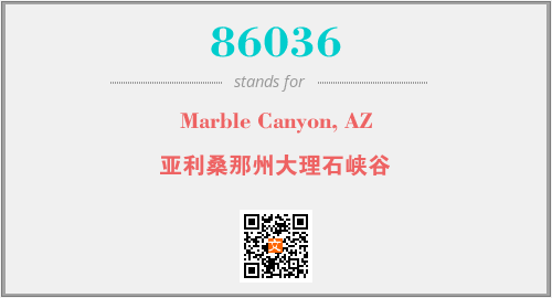 上述内容是“Marble Canyon, AZ”作为“86036”的缩写,解释为“亚利桑那州大理石峡谷”时的信息,以及英文缩略词86036所代表的英文单词,其对应的中文拼音、详细解释以及在英文中的流行度和相关分类、应用领域及应用示例等。