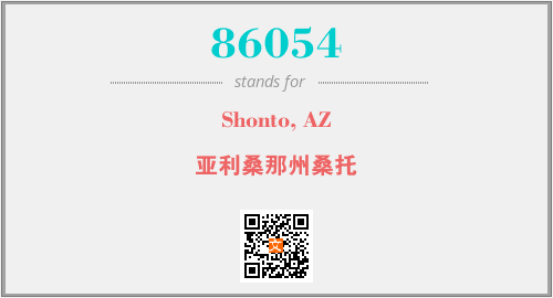 上述内容是“Shonto, AZ”作为“86054”的缩写,解释为“亚利桑那州桑托”时的信息,以及英文缩略词86054所代表的英文单词,其对应的中文拼音、详细解释以及在英文中的流行度和相关分类、应用领域及应用示例等。