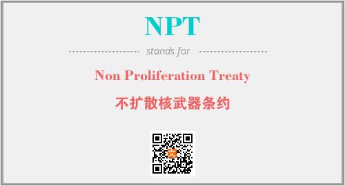 英文缩略词“NPT”经常作为“Non Proliferation Treaty”的英文缩写来使用,中文表示:“不扩散核武器条约”。本文将详细介绍英文缩写词NPT所代表英文单词,其对应的中文拼音、详细解释以及在英语中的流行度。此外,还有关于缩略词NPT的分类、应用领域及相关应用示例等。