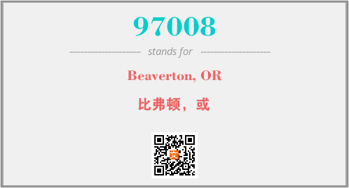 上述内容是“Beaverton, OR”作为“97008”的缩写,解释为“比弗顿,或”时的信息,以及英文缩略词97008所代表的英文单词,其对应的中文拼音、详细解释以及在英文中的流行度和相关分类、应用领域及应用示例等。