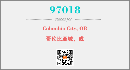上述内容是“Columbia City, OR”作为“97018”的缩写,解释为“哥伦比亚城,或”时的信息,以及英文缩略词97018所代表的英文单词,其对应的中文拼音、详细解释以及在英文中的流行度和相关分类、应用领域及应用示例等。